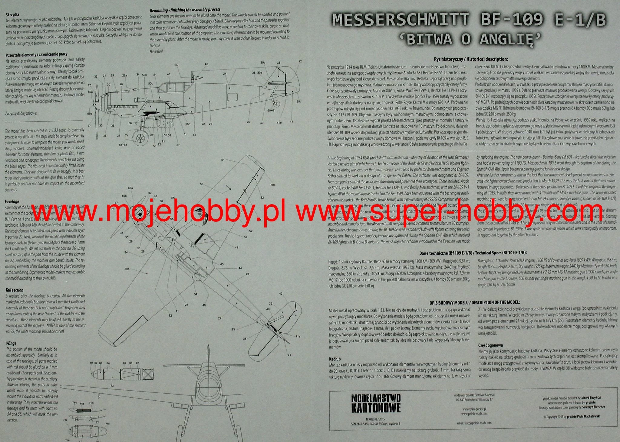 Modelarstwo Kartonowe 003 Bf-109 E-1/B ‘bitwa O AngliÄ™’